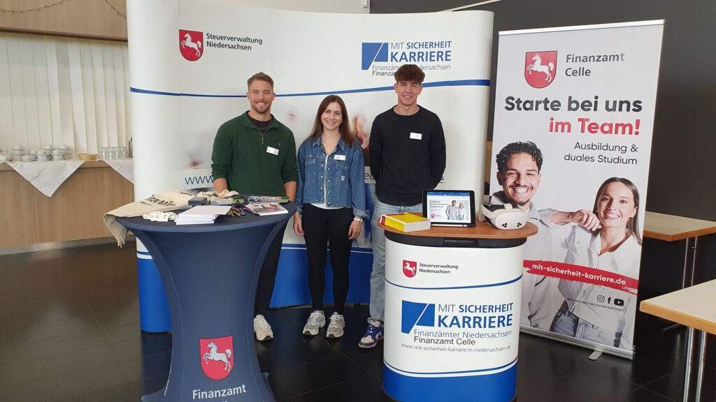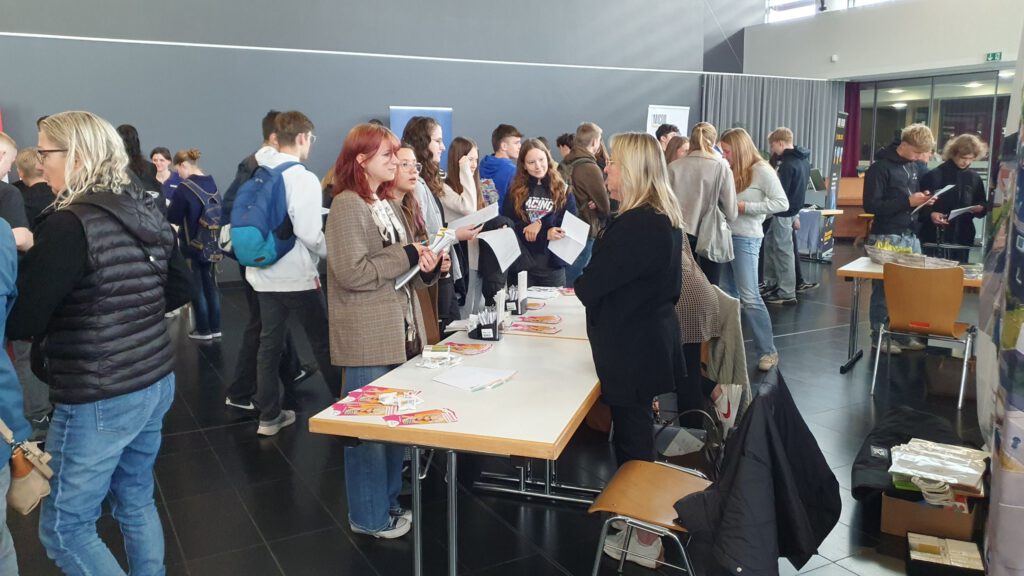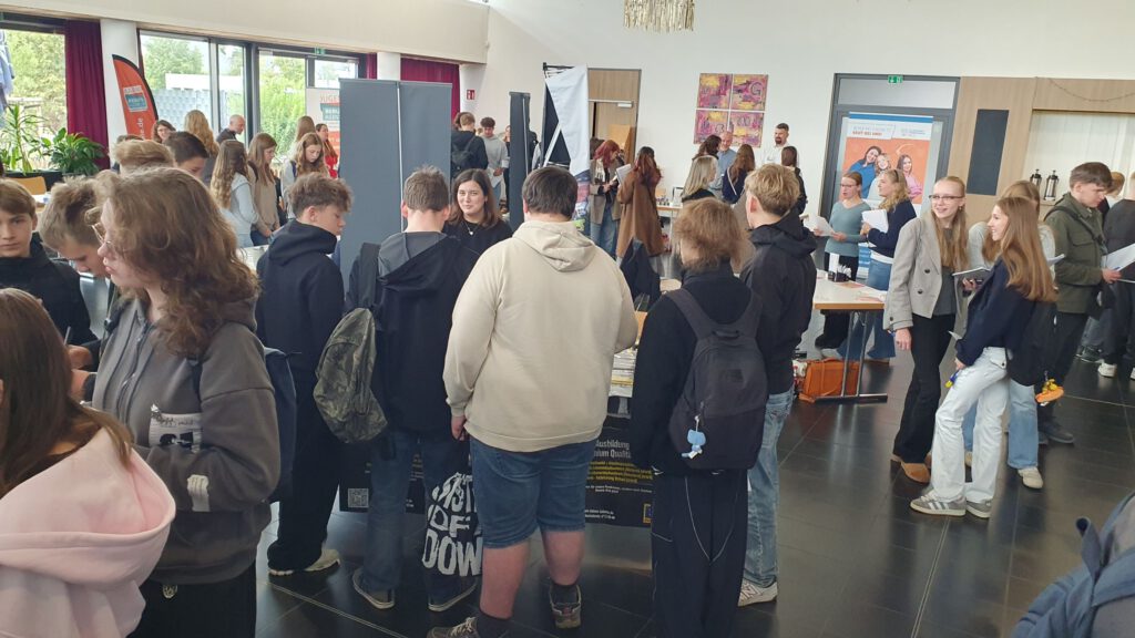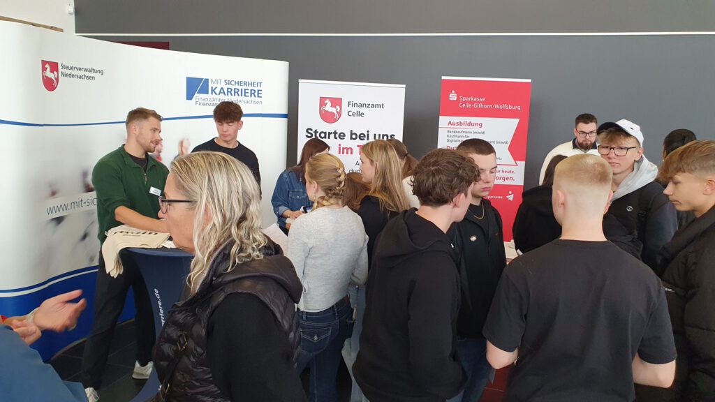Über den Vormittag verteilt in abgesprochenen Zeitfenstern kamen weit über 300 Schüler*innen und nutzten das Angebot. Die jungen Menschen konnten Fragen an die ausstellenden Betriebe stellen und haben die Antworten zum Teil von den derzeitigen Auszubildenden bekommen; so konnten sie sich auf Augenhöhe begegnen und Hemmungen wurden abgebaut. Es waren viele Branchen vertreten, wie Pflegeberufe, Pädagogik, Medizin, das Handwerk, Industrie, Einzelhandel, Verwaltung, die Bundeswehr, die Finanzwelt in Form des Finanzamtes und Geldinstituten, sodass die Vielfalt der Berufe und Möglichkeiten für die jungen Leute eindrucksvoll dargestellt wurde. Auch die Jugend-Berufsagentur des Landkreises Celle war unterstützend vor Ort – die Mitarbeitenden eröffneten den Jugendlichen viele Möglichkeiten und gaben Tipps und Anregungen, zeigten aber auch auf, was dort erlernt werden kann.